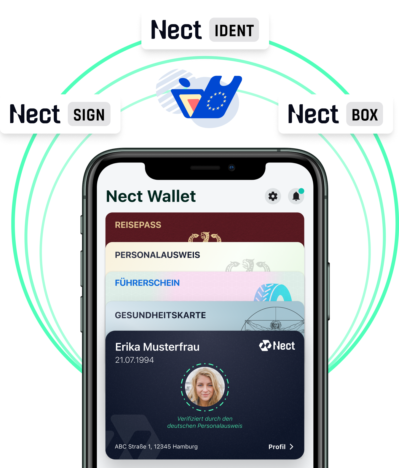 Durch die einzigartige Möglichkeit der industrieübergreifenden Datenwiederverwendung bieten wir einen flexiblen und einfachen Zugang zu weiteren Produkt-Lösungen, wie unserem Nect Sign, der qualifizierten elektronischen Signatur (QES).